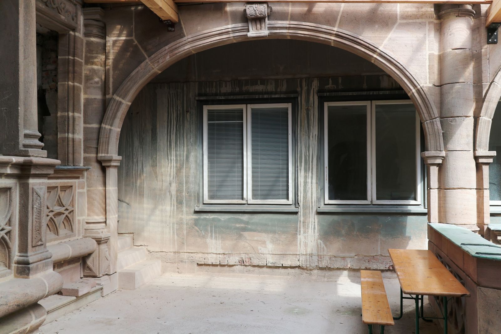 Daher gleich zu etwas erfreulicherem - dem Innenhof, an dem die Arbeiten ursprünglich 1959 eingestellt wurden: